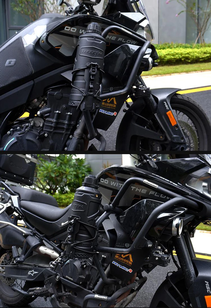 الملاءمة والراحة: تم تصميمه مع أ نظام التركيب المتخصص يستخدم أحزمة آمنة على شكل بنجي لربطها بقوة بقضبان أو إطارات الدراجات النارية. يسمح البناء خفيف الوزن بسهولة التعامل وإدارة المساحة بكفاءة على الدراجة.