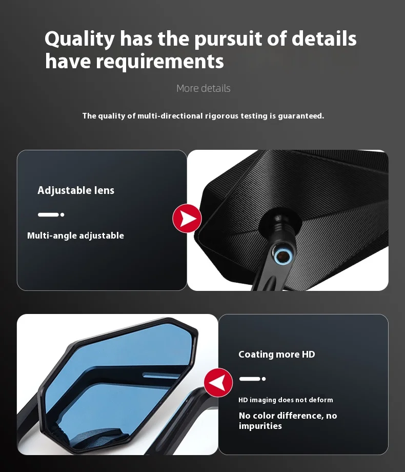 المادة: شيدت من سبائك ألومنيوم متينة مصنوعة بآلة CNC لمقاومة الاهتزاز العالية وطول العمر. ويتميز عدسات زرقاء مضادة للوهج مع تصميم محدب لتوفير أ مجال رؤية أوسع وقيادة أكثر أمانًا في ضوء الشمس الساطع أو في ظروف الليل.