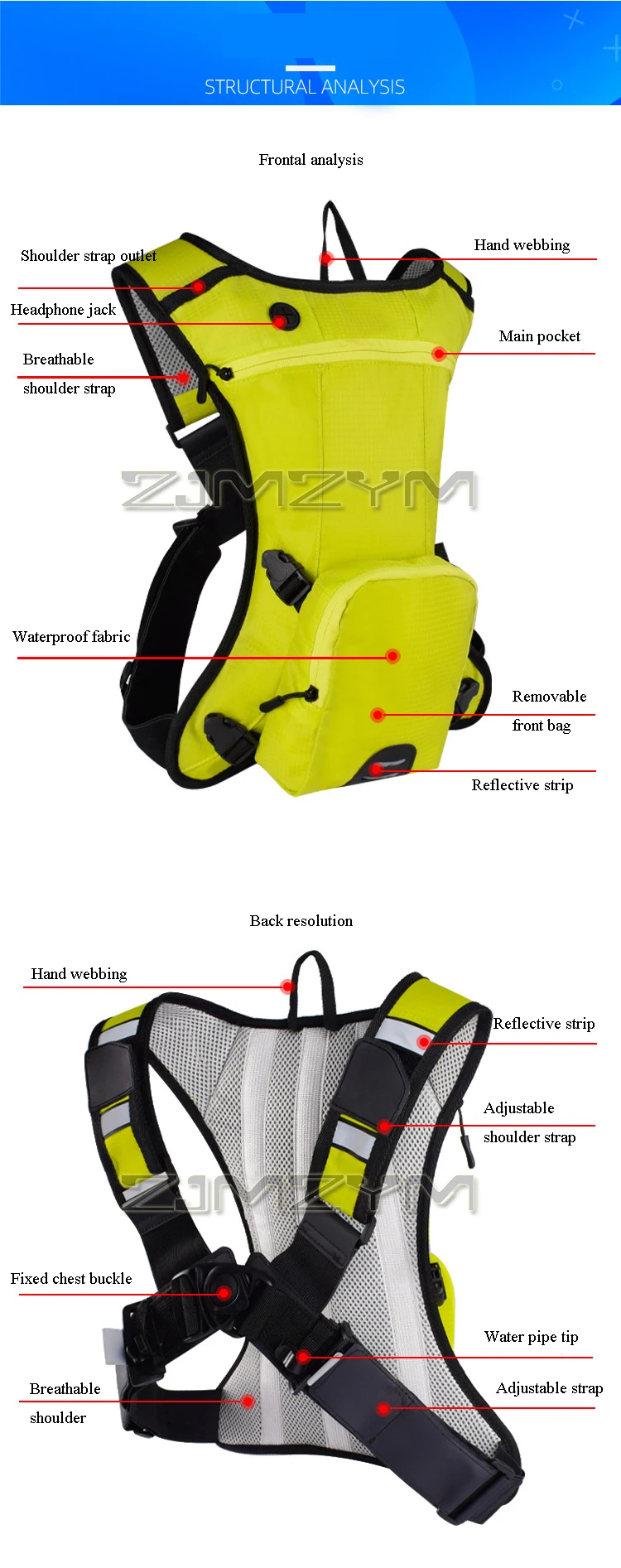 Anwendung: Speziell entwickelt für Radfahren, Laufen, Wandern und Motocross unter verschiedenen Outdoor-Bedingungen und bietet ein spezielles Fach für eine Trinkblase und eine Zweittasche für kleine Dinge.