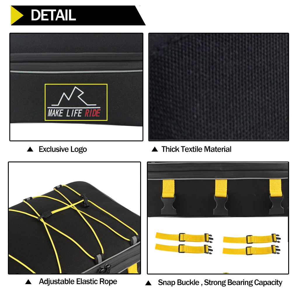 Diseñado para los ciclistas que necesitan almacenamiento confiable en la carretera, esta bolsita de motocicleta combina durabilidad, versatilidad y diseño inteligente. Construido con materiales impermeables y una estructura reforzada, mantiene sus elementos esenciales seguros en cualquier condición climática. Su diseño expandible proporciona espacio adicional cuando es necesario, mientras que las correas reflectantes y los sistemas de tensión ajustable aseguran tanto la seguridad como la conveniencia. Ya sea para recorrer, desplazamientos o viajes de aventura, esta bolsa de silla de montar ofrece el equilibrio perfecto de practicidad y estilo para cada motociclista.