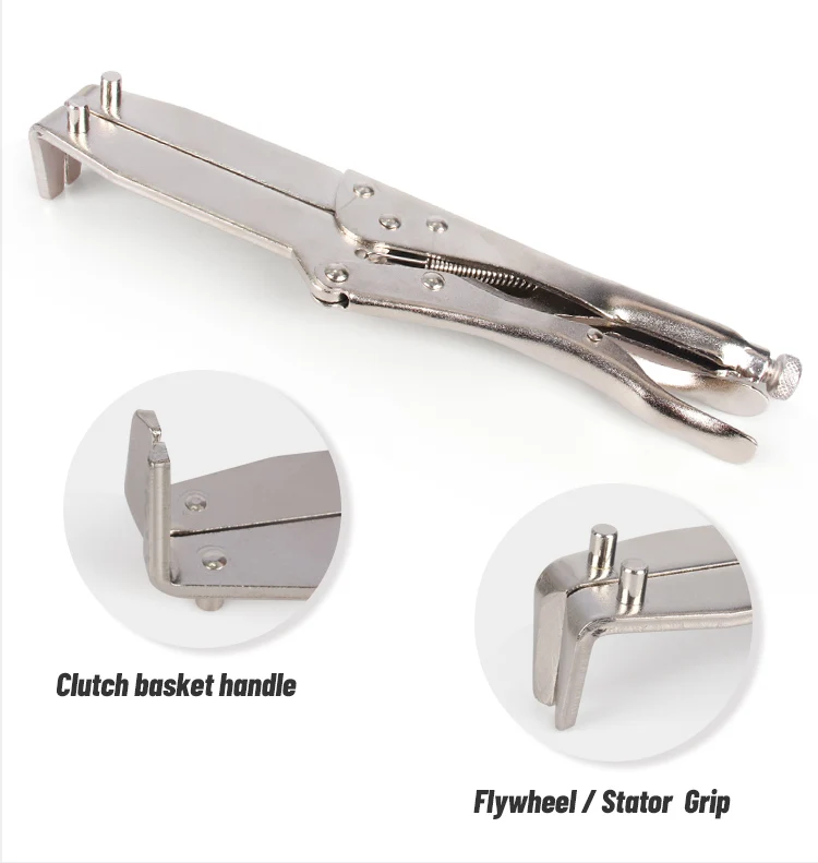 Ce produit est une paire de Pince à outil de fixation d'embrayage professionnelle conçu pour sécuriser les composants du moteur pendant l'entretien et la réparation. Ces pinces sont l'accessoire parfait pour amateurs de mécanique et de bricolage à la recherche d'un moyen fiable pour maintenir les paniers d'embrayage, les volants d'inertie et les stators en toute sécurité.