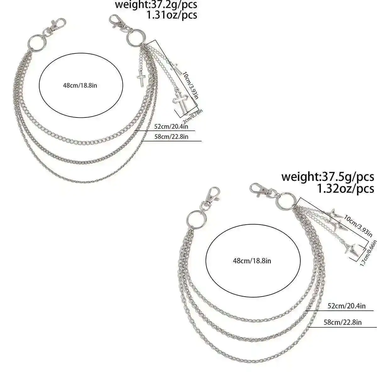 Realizzata con materiali metallici resistenti, questa catena in vita è progettata per l'uso quotidiano e per un uso duraturo. Le solide maglie della catena offrono una sensazione affidabile, mentre le clip lisce consentono un facile fissaggio e rimozione. Che sia abbinato a jeans, pantaloni cargo o abiti alternativi, aggiunge un tocco oscuro e sicuro al tuo stile.