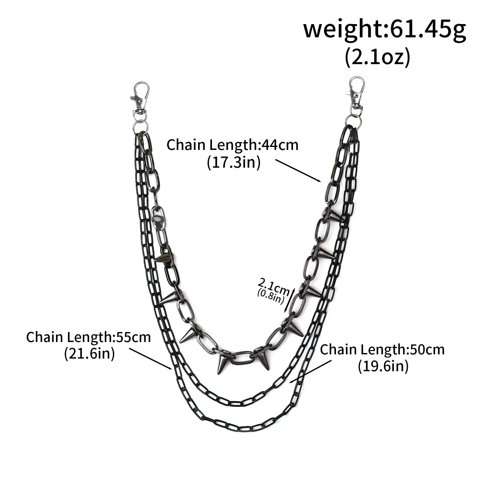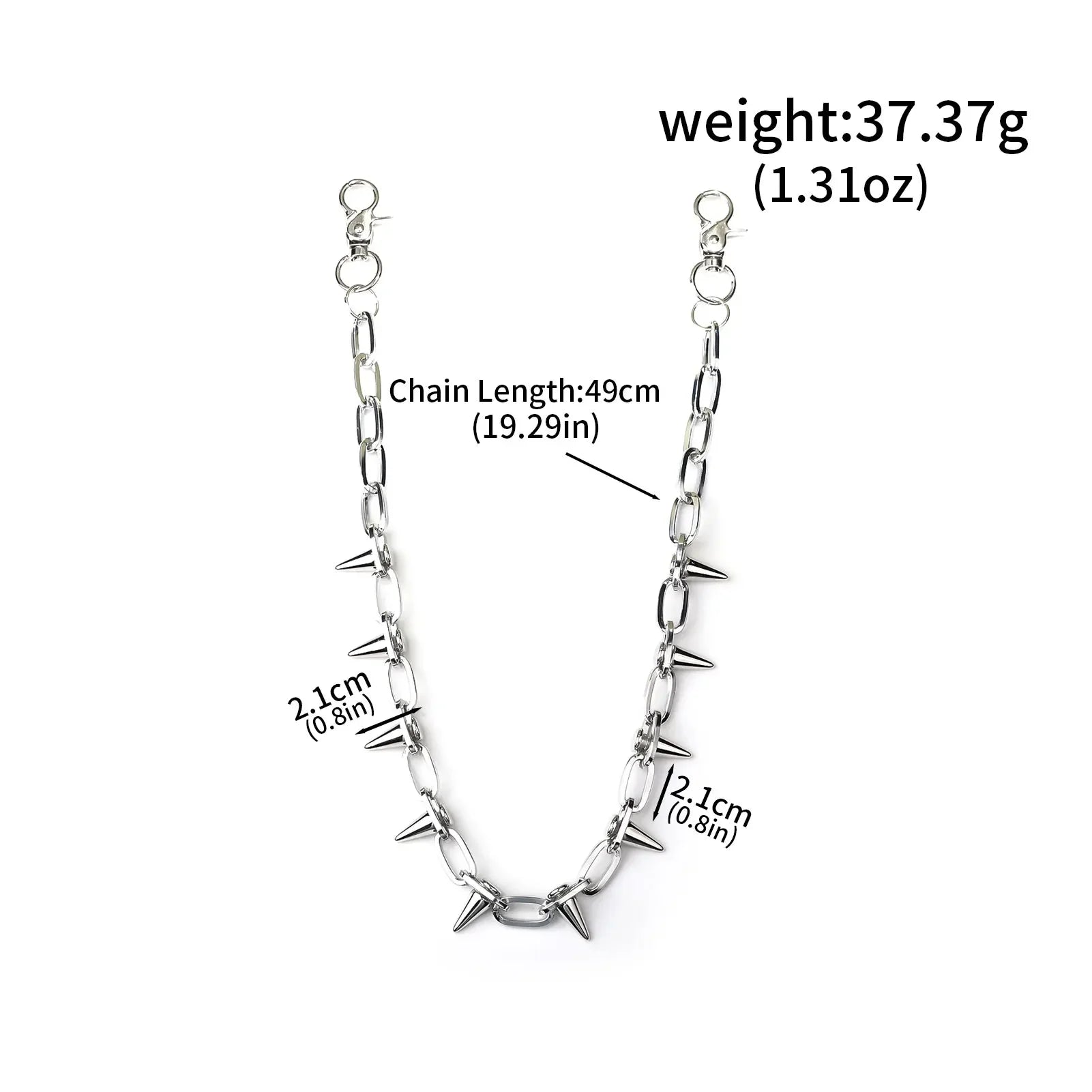 Caratterizzato da un design a lunghezza regolabile, offre una vestibilità sicura e personalizzabile per diversi stili e tipi di corporatura. Realizzato in metallo durevole e di alta qualità, fornisce robustezza e resistenza durature all'usura quotidiana: perfetto per streetwear, look da motociclista, concerti e uso quotidiano casual.