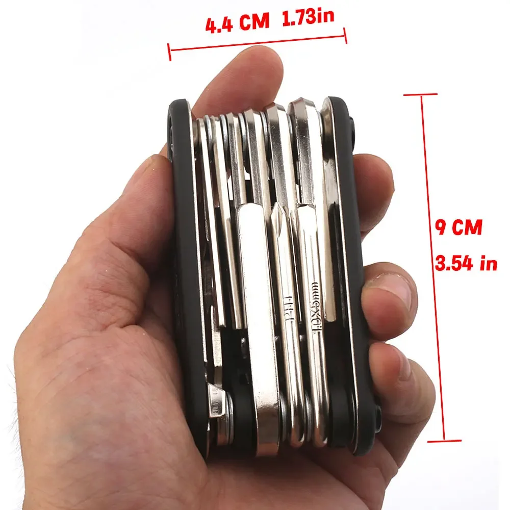 Funzionalità 16 in 1: Include un'ampia gamma di chiavi e driver per le comuni operazioni di manutenzione e regolazione in movimento.