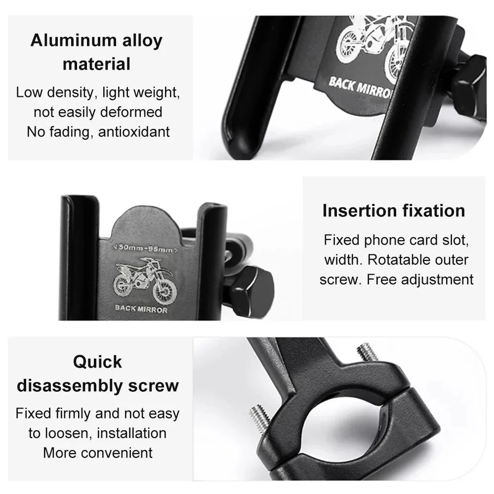 The Universal Alloy Motorcycle Phone Holder is essential for riders who demand a secure and vibration-free mounting system. The all-alloy construction specifically prevents the cracking and loosening common with plastic holders, while the precision CNC finishing ensures a luxurious look that won't fade over time. With its wide compatibility range and multi-axis adjustability, this holder offers the professional-grade security and convenience required for both intense off-road adventures and casual weekend tours.