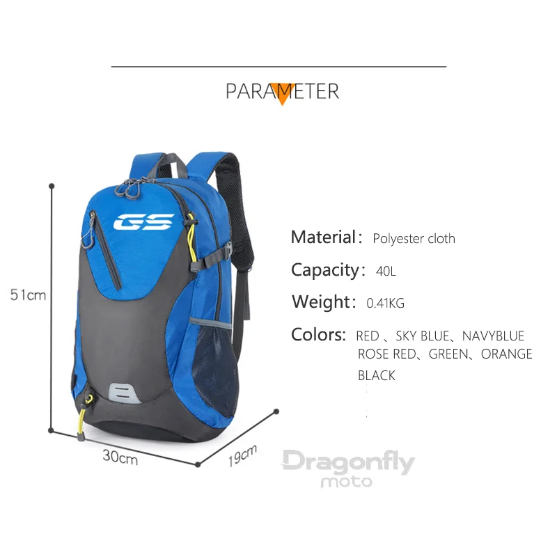 Preparati per qualsiasi viaggio con Zaino da turismo con logo GS Adventure, una borsa ad alta capacità progettata per l'uso all'aperto, i viaggi e i viaggi in moto. Questo zaino presenta un design bicolore in blu e grigio con accenti gialli e un bianco prominente Il logo della G.S sul pannello frontale superiore. Le immagini promozionali ne evidenziano la struttura robusta, descrivendo in dettaglio una capacità di carico di 38 gatti (una misura approssimativa del peso) e confermando a Capacità di carico 19 litri.