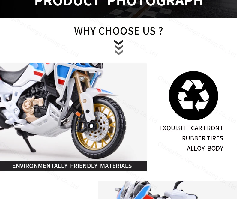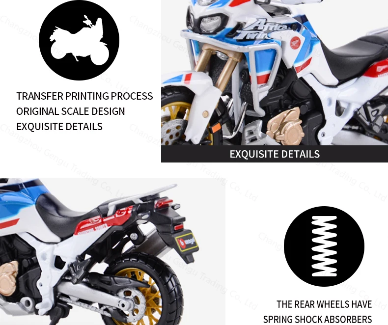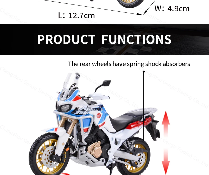 Crafted from premium alloy metal, it combines durability with a realistic look and feel. Every detail has been faithfully reproduced: the robust frame, detailed tires, off-road suspension, and adventurous styling that makes this bike a true icon of exploration.