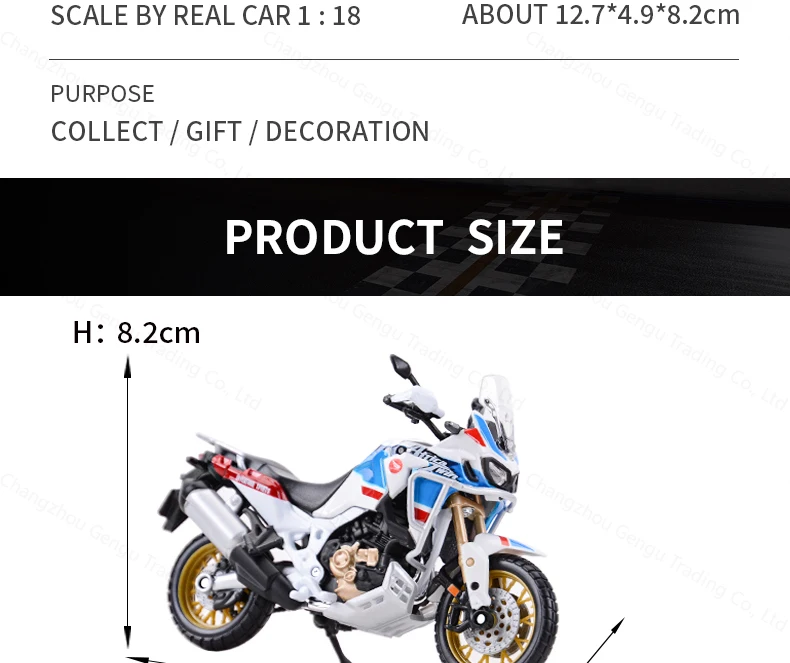 Bring the thrill of adventure riding into your collection with the 1:18 Africa Twin Adventure Diecast Motorcycle Model. Built with precision and attention to detail, this miniature captures the rugged spirit and bold design of the legendary adventure bike—scaled perfectly for collectors and enthusiasts.
