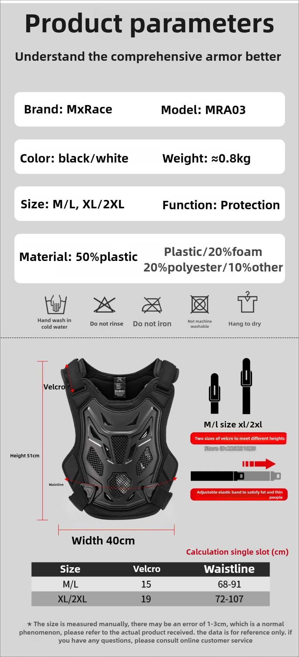 This Motorcycle Chest Armor Vest is engineered for riders who demand the highest level of protection without sacrificing comfort or mobility. Designed with a durable outer shell and reinforced impact zones, it provides superior defense against falls and collisions while ensuring breathability for long rides. The ergonomic structure fits snugly to the body, offering a secure yet flexible feel, making it perfect for motocross, off-road adventures, or daily motorcycle use. Adjustable straps allow for a customized fit, while the sleek and aggressive design adds a stylish edge to your riding gear.