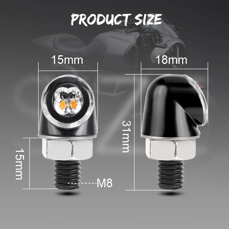 Its small, sleek design integrates seamlessly with any motorcycle, from sportbikes and cruisers to adventure and café racers. Despite its compact size, it delivers a bright, sharp signal that grabs attention instantly. Constructed from durable, waterproof materials, this mini LED turn signal is built to withstand rain, dust, and vibration, making it perfect for both daily commuting and off-road adventures.
