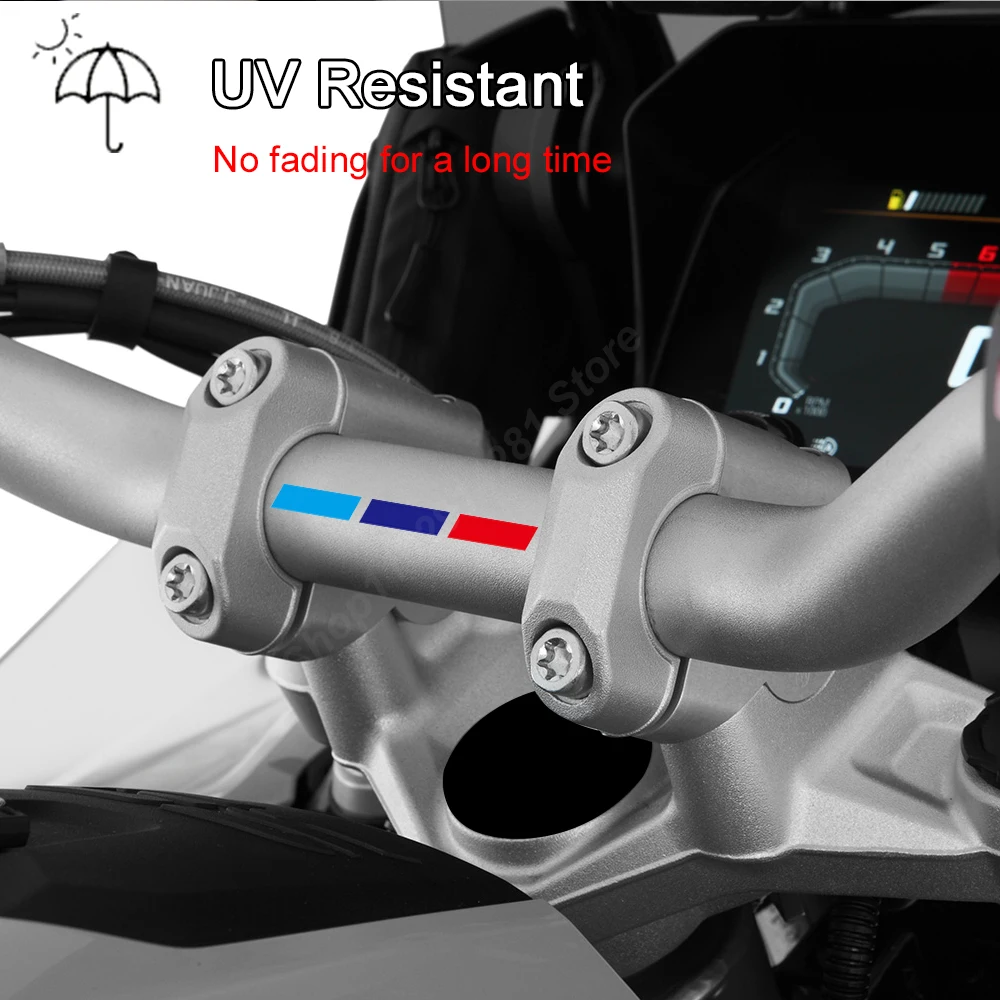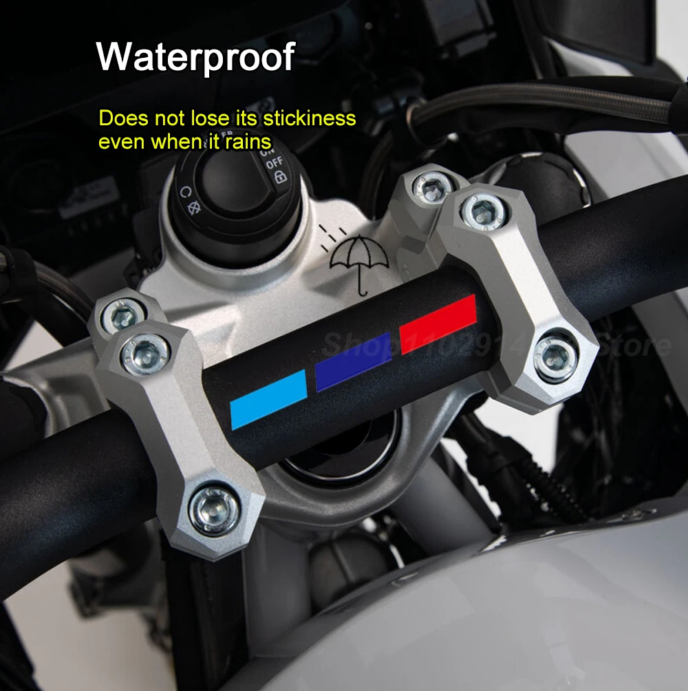 This product is a professional triple-stripe handlebar decal designed to add a distinctive, athletic accent to your motorcycle's cockpit. These specialized stickers are the perfect accessory for motorcyclists and racing enthusiasts who want a high-visibility, technical look for their riding setup.