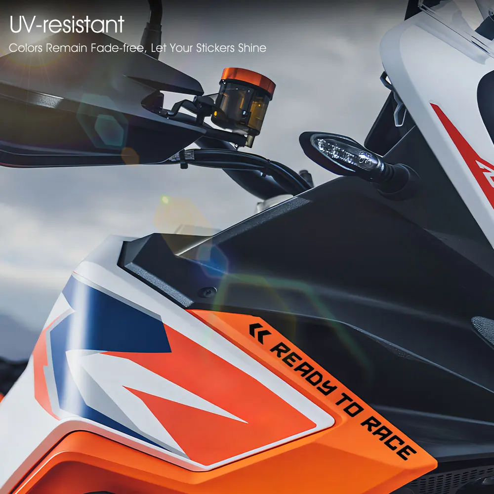 The "READY TO RACE" Glow-In-The-Dark Decals are a functional and stylish upgrade for any performance-oriented rider. By absorbing ambient light, they provide a unique glowing effect that significantly increases your profile to other motorists at night. Combined with heavy-duty waterproof construction and a fade-resistant finish, these stickers offer a professional, high-impact way to customize your bike for 24-hour visibility.