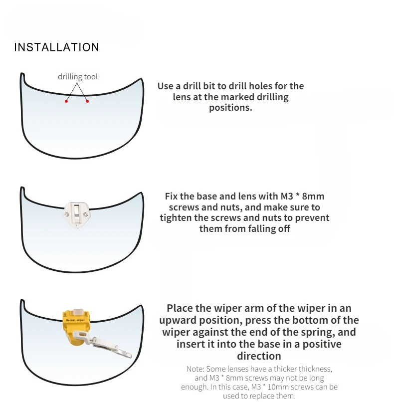 Fit & Comfort: Engineered for a universal fit, the kit includes various mounting plates and screws to ensure compatibility with a wide range of helmet shapes and visor curves.