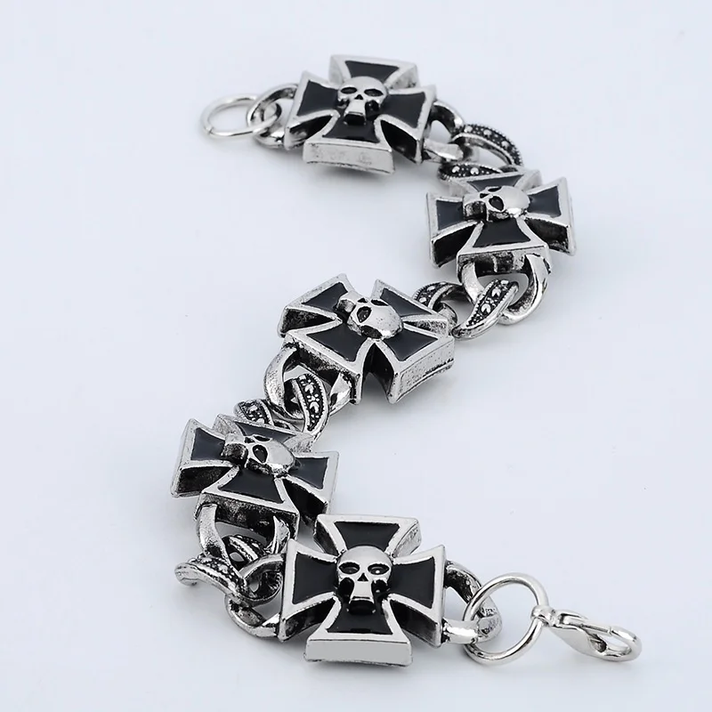 The Cross Shape Skull Bracelet is designed for those who express strength, individuality, and fearless style. Inspired by gothic symbolism, biker culture, and rebellious fashion, this bracelet blends cross-shaped elements with skull details to create a powerful statement accessory.