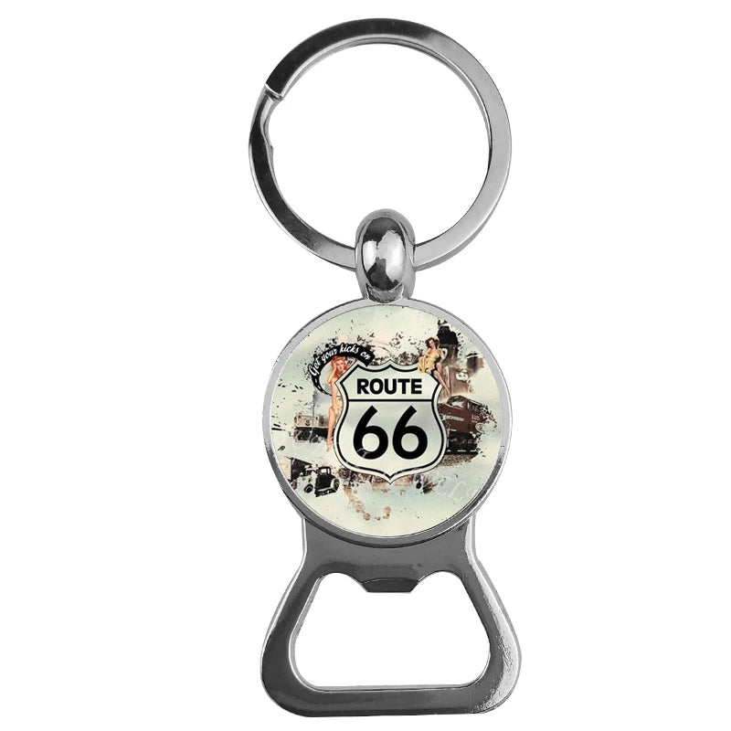 Featuring a clean Route 66–inspired design, it delivers a strong yet timeless visual identity that reflects independence and exploration. Compact and lightweight, it’s ideal for car keys, motorcycle keys, backpacks, or travel gear—adding character without bulk.