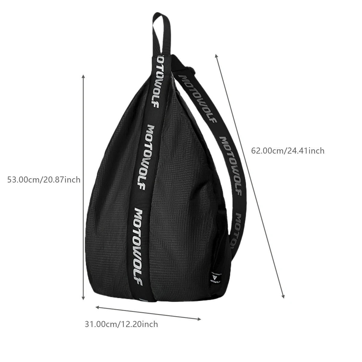 Fit & Comfort: Engineered with an adjustable single-strap system that allows the bag to sit securely against the rider's back without shifting during movement. Its flexible construction expands to accommodate bulky gear while remaining compact when empty.