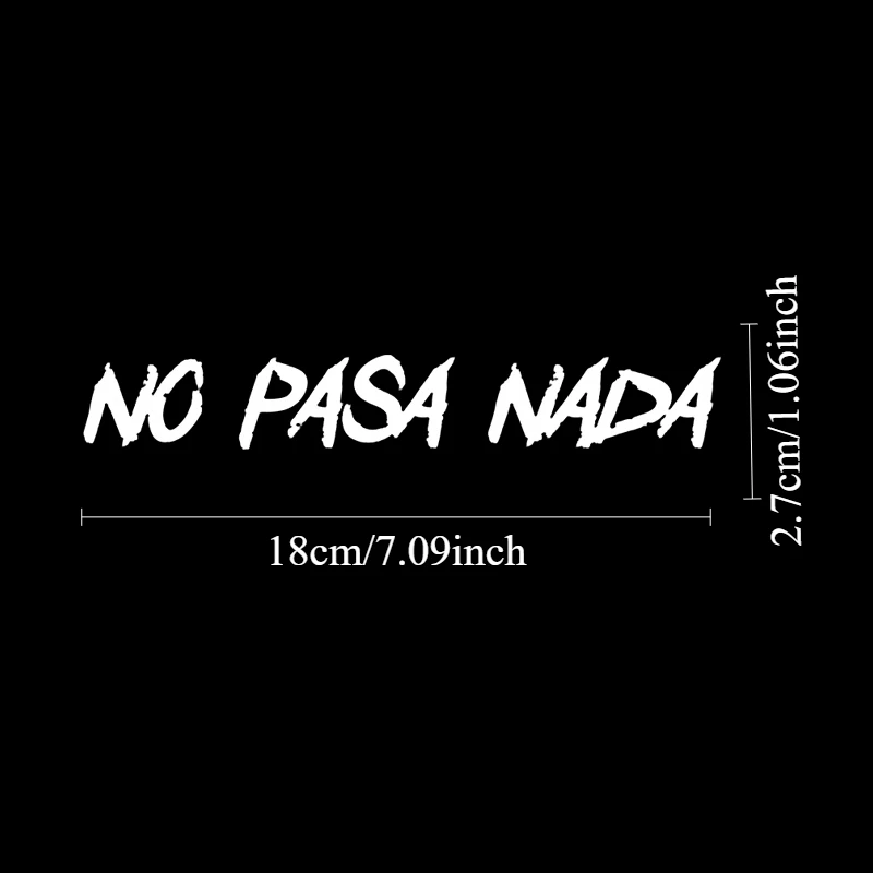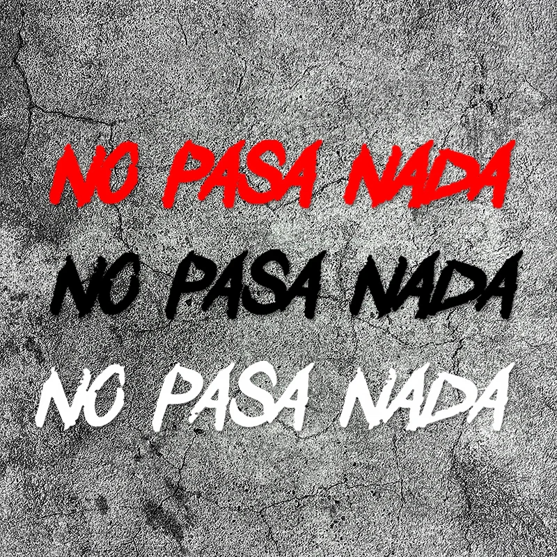Design & Graphic: Features a stylized, aggressive brush-font design of the phrase "No Pasa Nada." The decals are available in high-contrast colors including red, black, and white to ensure maximum visibility on any surface.