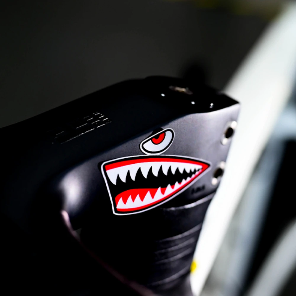 This product is a premium vinyl graphic decal featuring an iconic shark jaw design, engineered to add an aggressive, customized look to your gear. This decal is the perfect accessory for cyclists and bikers who want to personalize their frames, helmets, or fairings with a bold, high-contrast aesthetic.