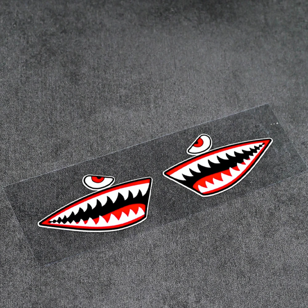 Design & Graphic: Features a classic "shark mouth" aviation-style graphic with sharp white teeth, red gums, and a menacing red eye. The high-contrast colors are designed to stand out against dark matte or gloss finishes.