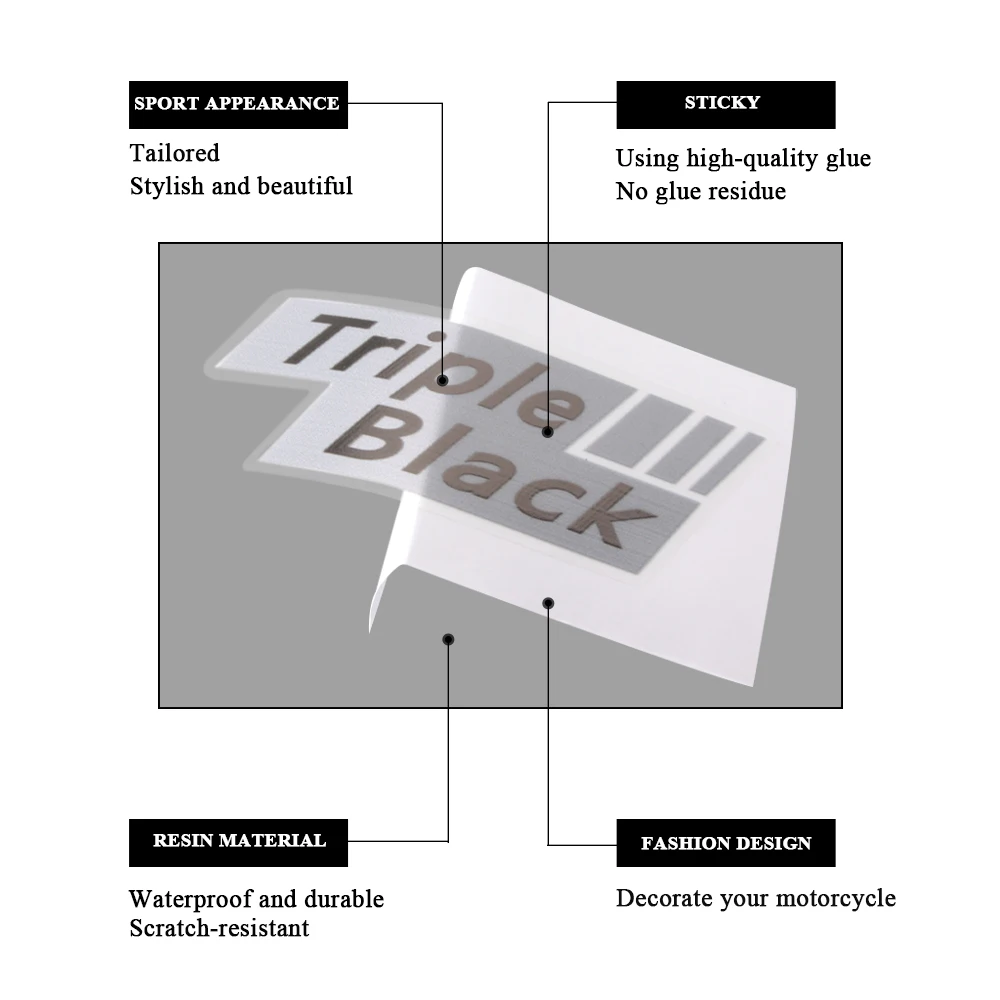 Design & Graphic: Features the exclusive "Triple Black" logo in a modern and elegant design. The sticker has a finish that decorates the motorcycle while providing a factory-installed appearance.